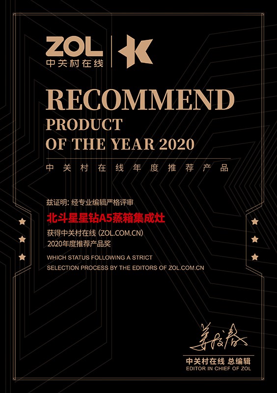 攬獲兩項大獎!北斗星集成灶星鉆A5榮獲“2020年度人氣產(chǎn)品獎”和ZOL“2020年度推薦產(chǎn)品獎”兩項榮譽。